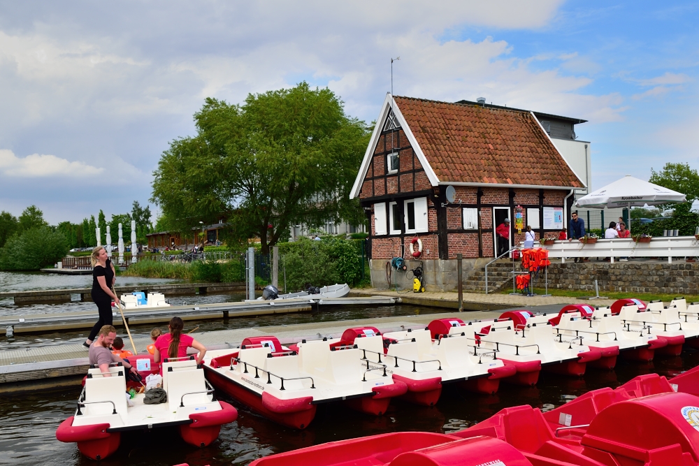 „Heimathafen“ der Tretbootflotte ist die Verleihstation des BCN am Ostufer des Vechtesees. Sie hat seit vielen Jahren ihren Sitz im „Backhaus-Busch“, einem denkmalgeschützen ehemaligen Landwirtschaftsgebäude. An drei eigenen Mietbootstegen, hilft Ihnen das Personal beim bequemen und sicheren Ein- und Aussteigen aus den Tretbooten.